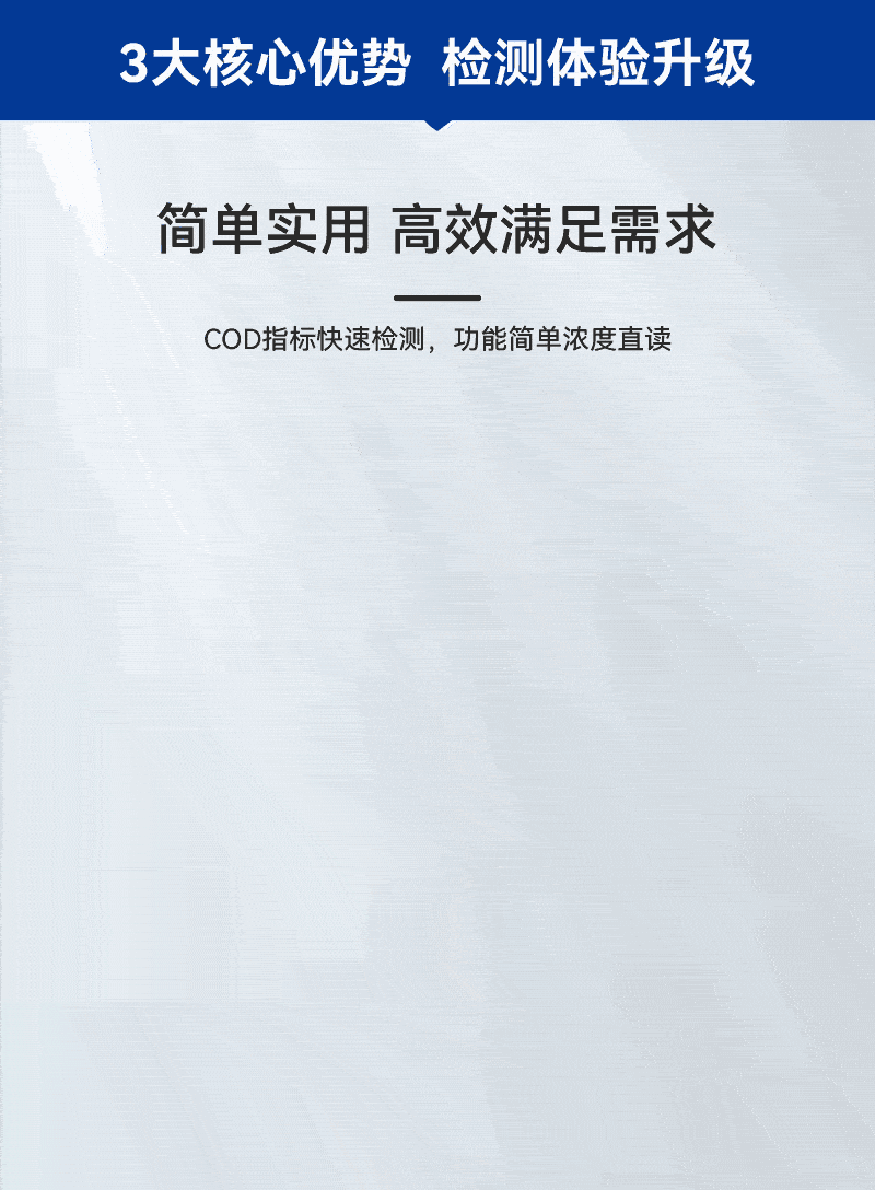 1、簡單實用高效滿足需求,COD指標(biāo)快速檢測,功能簡單濃度直讀