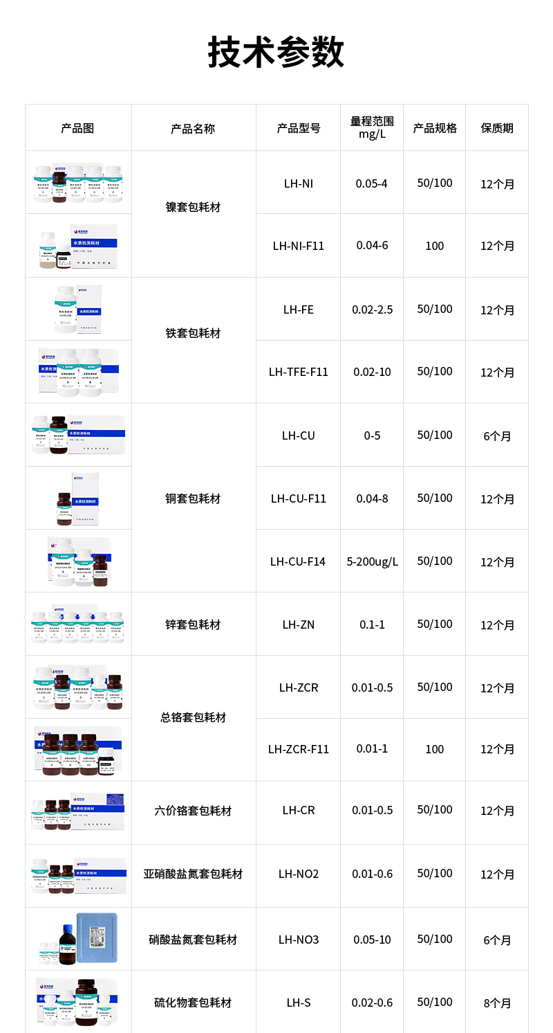 水質(zhì)污染物液體耗材技術(shù)參數(shù):