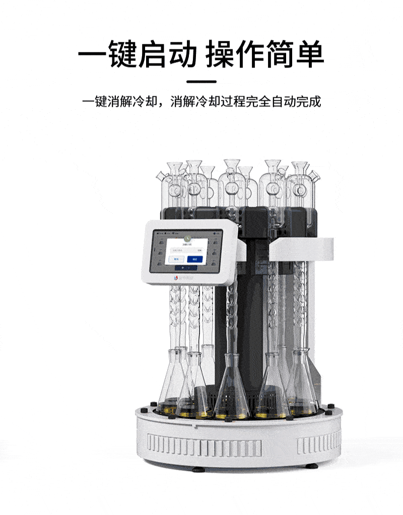 2、一鍵啟動:智能模式操作簡單,只需一鍵啟動,各消解單元按照設定程序,自動升溫、消解、回流、冷卻;
