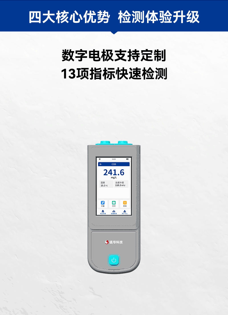 1、手持式迷你主機(jī),支持COD、氨氮、濁度、藍(lán)綠藻、葉綠素、電導(dǎo)率、PH、ORP、溶解氧、污泥濃度、溫度13項(xiàng)指標(biāo)快速檢測,滿足各領(lǐng)域水質(zhì)檢測需求;