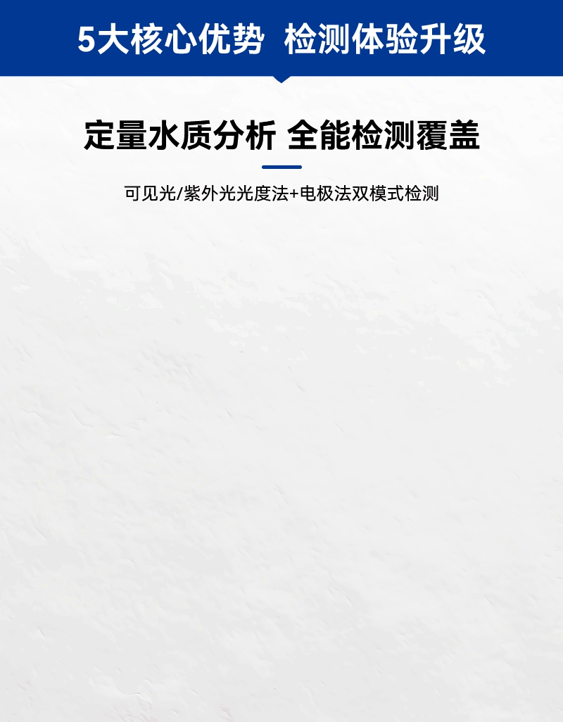 4、190nm-1100nm全波段檢測,支持光度測量、多參數(shù)測定儀、紫外總氮及電化學(xué)功能,支持1-3cm比色皿及φ16mm管比色,滿足多樣化水質(zhì)檢測需求;