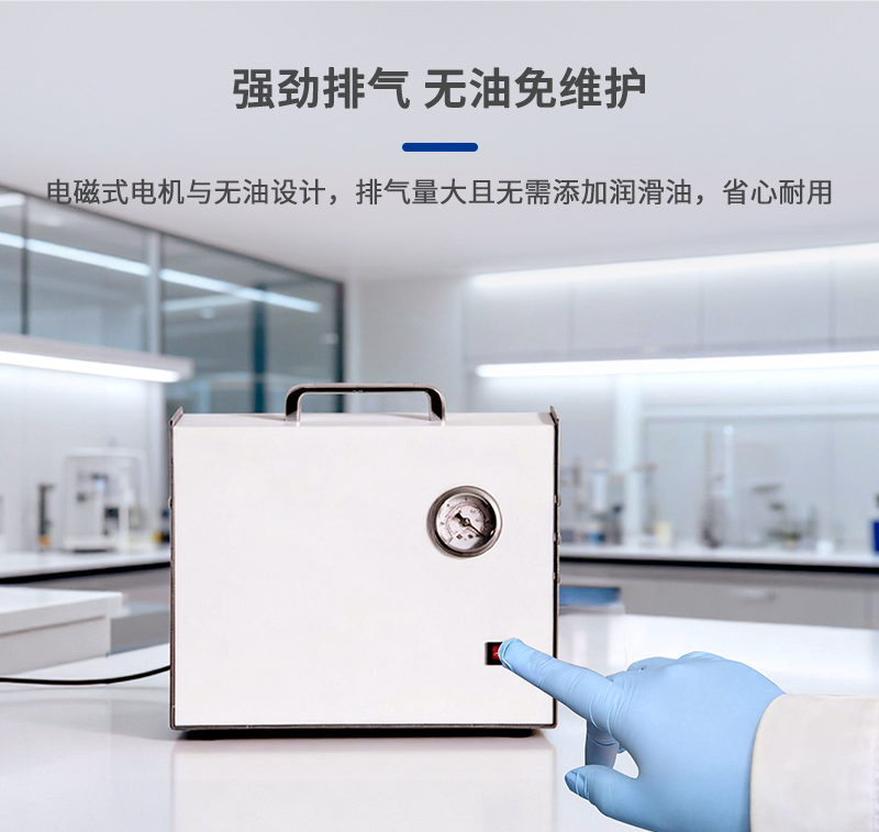 8、真空泵采用電磁式電機,活塞直線往復運動產(chǎn)生壓縮氣體,排氣量大;