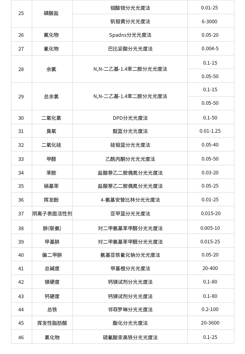 COD<20分鐘、氨氮<15分鐘、總磷<50分鐘、總氮<60分鐘、濁度<1分鐘、懸浮物<1分鐘
