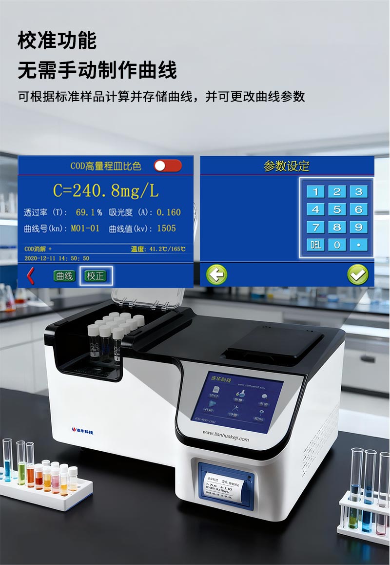 5.校準(zhǔn)功能:儀器自備校準(zhǔn)功能,可根據(jù)標(biāo)準(zhǔn)樣品計(jì)算并存儲(chǔ)曲線,無需手動(dòng)制作曲線;